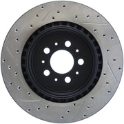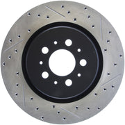 StopTech Drilled and Slotted Sport Rotors are 1-piece direct replacement brake discs for factory brake systems and stock calipers that look great behind your wheels – and offer significantly improved braking performance. The unique cross-drilling and slotting aids with heat and brake dust dispersal; prevents glazing of the pads; adds bite and improves wet and dry braking performance. Built to last; the black e-coating provides protection from corrosion and the high carbon metallurgy (in most applications) offers quieter operation; better crack resistance and increased performance.
