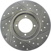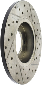 StopTech Drilled and Slotted Sport Rotors are 1-piece direct replacement brake discs for factory brake systems and stock calipers that look great behind your wheels – and offer significantly improved braking performance. The unique cross-drilling and slotting aids with heat and brake dust dispersal; prevents glazing of the pads; adds bite and improves wet and dry braking performance. Built to last; the black e-coating provides protection from corrosion and the high carbon metallurgy (in most applications) offers quieter operation; better crack resistance and increased performance.