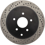StopTech Drilled and Slotted Sport Rotors are 1-piece direct replacement brake discs for factory brake systems and stock calipers that look great behind your wheels – and offer significantly improved braking performance. The unique cross-drilling and slotting aids with heat and brake dust dispersal; prevents glazing of the pads; adds bite and improves wet and dry braking performance. Built to last; the black e-coating provides protection from corrosion and the high carbon metallurgy (in most applications) offers quieter operation; better crack resistance and increased performance.