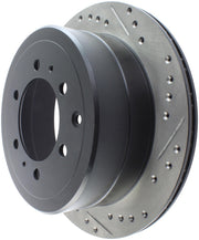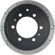 StopTech Drilled and Slotted Sport Rotors are 1-piece direct replacement brake discs for factory brake systems and stock calipers that look great behind your wheels – and offer significantly improved braking performance. The unique cross-drilling and slotting aids with heat and brake dust dispersal; prevents glazing of the pads; adds bite and improves wet and dry braking performance. Built to last; the black e-coating provides protection from corrosion and the high carbon metallurgy (in most applications) offers quieter operation; better crack resistance and increased performance.