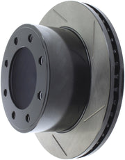 StopTech Slotted Sport Rotors are 1-piece direct replacement brake discs for factory brake systems and stock calipers that look great behind your wheels – and offer significantly improved braking performance. The unique slotting aids with heat and brake dust dispersal; prevents glazing of the pads; adds bite and improves wet and dry braking performance. Built to last; the black e-coating provides protection from corrosion and the high carbon metallurgy (in most applications) offers quieter operation; better crack resistance and increased performance.