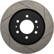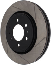 StopTech Slotted Sport Rotors are 1-piece direct replacement brake discs for factory brake systems and stock calipers that look great behind your wheels – and offer significantly improved braking performance. The unique slotting aids with heat and brake dust dispersal; prevents glazing of the pads; adds bite and improves wet and dry braking performance. Built to last; the black e-coating provides protection from corrosion and the high carbon metallurgy (in most applications) offers quieter operation; better crack resistance and increased performance.