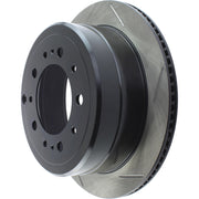 StopTech Slotted Sport Rotors are 1-piece direct replacement brake discs for factory brake systems and stock calipers that look great behind your wheels – and offer significantly improved braking performance. The unique slotting aids with heat and brake dust dispersal; prevents glazing of the pads; adds bite and improves wet and dry braking performance. Built to last; the black e-coating provides protection from corrosion and the high carbon metallurgy (in most applications) offers quieter operation; better crack resistance and increased performance.