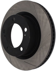 StopTech Slotted Sport Rotors are 1-piece direct replacement brake discs for factory brake systems and stock calipers that look great behind your wheels – and offer significantly improved braking performance. The unique slotting aids with heat and brake dust dispersal; prevents glazing of the pads; adds bite and improves wet and dry braking performance. Built to last; the black e-coating provides protection from corrosion and the high carbon metallurgy (in most applications) offers quieter operation; better crack resistance and increased performance.