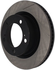 StopTech Slotted Sport Rotors are 1-piece direct replacement brake discs for factory brake systems and stock calipers that look great behind your wheels – and offer significantly improved braking performance. The unique slotting aids with heat and brake dust dispersal; prevents glazing of the pads; adds bite and improves wet and dry braking performance. Built to last; the black e-coating provides protection from corrosion and the high carbon metallurgy (in most applications) offers quieter operation; better crack resistance and increased performance.