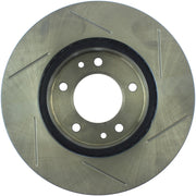 StopTech Slotted Sport Rotors are 1-piece direct replacement brake discs for factory brake systems and stock calipers that look great behind your wheels – and offer significantly improved braking performance. The unique slotting aids with heat and brake dust dispersal; prevents glazing of the pads; adds bite and improves wet and dry braking performance. Built to last; the black e-coating provides protection from corrosion and the high carbon metallurgy (in most applications) offers quieter operation; better crack resistance and increased performance.