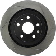 StopTech Slotted Sport Rotors are 1-piece direct replacement brake discs for factory brake systems and stock calipers that look great behind your wheels – and offer significantly improved braking performance. The unique slotting aids with heat and brake dust dispersal; prevents glazing of the pads; adds bite and improves wet and dry braking performance. Built to last; the black e-coating provides protection from corrosion and the high carbon metallurgy (in most applications) offers quieter operation; better crack resistance and increased performance.