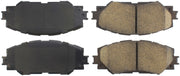 StopTech Street Select Brake Pads provide superior stopping power and reliability for passenger cars and light trucks. StopTech engineers have developed two application specific friction compounds; semi-metallic and ceramic that combine improved stopping performance while reducing noise and dust. StopTech Street Select Brake Pads are installation ready with High Performance shims attached to eliminate noise and vibration. OE style gas slots and chamfers optimize braking performance especially in repeat stop situations. Application specific hardware is included with each pad set ensuring full restoration of system performance and extended service life.