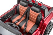The SUPERtrax® Warrior Children's Ride-On Toy - Glossy Crimson is the perfect car for fearless and adventurous children. With its real spring suspension, leather seating for two, and working headlights, this ride-on toy is designed for thrilling adventures. But don't worry, with the remote control, you can always be there to lend a helping hand if things get a little too intense. The SUPERtrax® Warrior is a trademark of Rolling Hills Trading, Inc. and comes with the advantage of full-time technical service staff and a fully stocked parts department. We stand by our products and provide exceptional customer service.Key Features:- 2 seater design with a seat width of 19 inches- Speed: 2-5 mph- Battery: 2-12V 7Ah Batteries- Car runs up to 48-90 minutes per charge- Remote control for parental assistance- Horn for added fun- USB/Bluetooth connection to play your child's favorite music- Volume control on the dash for music customization- Forward and reverse gears for versatile play- EVA foam rubber tires for better traction on hard surfacesSpecifications:- Color: Gloss Red- Maximum weight: 100 lbs- Maximum rider height: 3'6"- Recommended Age: 2 to 5 years old- Speed: 2-5 mph- Battery: 2-12V 7Ah battery- Car runs up to 48-90 minutes per charge- Three spoke steering wheel for easy maneuverability- Opening doors for a realistic experience- Working LED headlights and tail lights for enhanced visibility- Working gas pedal and horn for interactive play- USB/Bluetooth connection to play your child's favorite music- LED digital volt meter for battery monitoring- Forward and reverse gears for versatile play- High and low speeds for different levels of excitement- Remote control (2.4 GHz) for parental control- EVA foam rubber tires for traction on hard surfaces- Shock absorbers for a smooth ride- 1/4 scale for a realistic look- Rechargeable 12V battery and charger includedProduct Shipping Dimensions:- 57 x 30 x 19 inches- Shipping Weight: 88 poundsIncluded in the package:- Complete SUPERtrax® Warrior 12V Ride-On Vehicle- 2 Seater Remote Control- 2 - 12V 7Ah Rechargeable Batteries and Charger- Assembly Instructions/User ManualEnjoy peace of mind with our 180-day guarantee against manufacturer defects. We ensure that all our products are of the highest quality and in perfect working condition when you receive them. If you ever have any questions or encounter any issues, our customer service department is available to assist you within 24 hours.Please note that the SUPERtrax® Warrior Children's Ride-On Toy - Glossy Crimson is not just any ordinary remote control ride on toy. It is a one-of-a-kind adventure machine that will ignite your child's imagination and provide endless hours of fun and excitement. Get ready for thrilling rides and unforgettable memories with the SUPERtrax® Warrior. Let your child's adventurous spirit soar!
