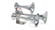 The Riot horn isn't just loud, it looks ready for the show with its brass bells finished in brilliant triple chrome, mirror-polished stainless steel bracket and chrome electric air valve. The Riot is so loud it will overpower just about any sound you can think of, including chanting protesters, other trains, you name it.