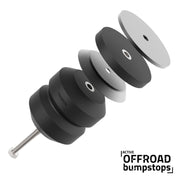 The Active Off-Road Bumpstops offer off-road enthusiasts greater control over their vehicles' suspension travel. Using progressive-rate springs means that instead of a hard stop at the end of axle travel the axle energy will be absorbed when bottoming-out producing smooth, predictable and quiet axle engagement and disengagement. Unlike the OEM bumpstops, Timbren uses superior natural rubber compound ensuring the Active Off-Road Bumpstops will continue to operate even after a lifetime of off-road abuse. Similar to our Timbren SES line, Active Off-Road Bumpstops carry a lifetime warranty and a satisfaction guarantee. The ABSFRRGR replaces the rear bump stops on the 2016-2020 Ford Ranger. Install a kit and experience the difference.