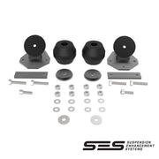 This SES Suspension Upgrade fits the rear suspension of a Chevrolet Equinox. Each laser cut piece of steel is precision bent and powder-coated to ensure a quality fit. We've engineered our hollow rubber springs to deliver a progressive spring rate. In other words, the more weight that pushes down on the rubber springs the harder they work to prevent rear end sag. Whether you're pulling a trailer or carrying a heavy load in the back of your vehicle, our hollow rubber springs adjust automatically to keep the vehicle level at all times. This SES Suspension Upgrade replaces the jounce stop inside the coil. Its unique design ensures superb ride quality ? loaded or unloaded. Unlike other auxiliary spring systems, the SES Suspension Upgrade guarantees the best of both worlds. More Safety: When extra weight makes your vehicle squat in the back, the front-end lifts up reducing traction on the front tires. Not only that, if the front is too high your headlights will shine up into the eyes of oncoming traffic instead of pointing down on the road ahead. Timbren SES upgrades are designed to keep your vehicle level at all times. This will increase traction on the front tires, improve overall steering and keep your headlights pointing down on the road where they belong. More Stability: If extra weight makes your vehicle top-heavy, you're going to experience body roll and sway. There's nothing more challenging than trying to keep your vehicle moving on a straight path when the load is unstable. Timbren SES upgrades offer you more stability and peace of mind by eliminating suspension sag and reducing body roll & sway. More Comfort Too much weight can cause your vehicle to bottom out if you're driving over roads that are bumpy and rough. All this road shock will compromise an otherwise comfortable ride. Improve your ride quality by installing Timbren SES upgrades, guaranteed to provide a softer, smoother ride, empty or loaded.