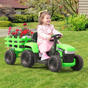 TOBBI 12V Battery-Powered Tractor Ride-On with Trailer for Kids - Electric Vehicle Fun!