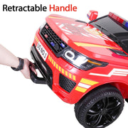 TOBBI 12V Electric Fire Truck Kids Ride-On Police Car with Megaphone, Remote Control, and Lights