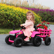 TOBBI 12V Electric Kids Tractor with Trailer and Dual Motors