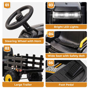 TOBBI 12V Electric Tractor Ride-On Car with Trailer for Kids - Battery Powered Toy Vehicle