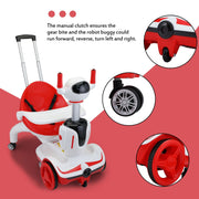 But the fun doesn't stop there. This 3-in-1 robot buggy is made with qualified PP material and is certified by F963 and EPA, ensuring its safety and durability. It can be used as an electric scooter, a dining chair, and a stroller, providing endless entertainment and functionality. The telescopic back handle is helpful for parents, while the front of the buggy fits kids perfectly.