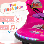 The TOBBI Snail Shaped 12v Electric Ride On for Toddlers - Rosy+Light Purple is the perfect remote control ride on bumper car to create precious childhood memories for your little ones. With its vibrant color and unique snail-shaped appearance, this electric bumper car is sure to catch everyone's attention. Made with high-grade material and equipped with rubber anti-collision strips, this bumper car is reliable and built to withstand any bumps or crashes. The seat belt ensures the safety of your children while they enjoy spinning forward and backward on their own or bumping under your remote control maneuvering. The two universal wheels allow for easy 360-degree rotation, providing endless fun for your kids. Key Features:- Eye-catching snail-shaped appearance- High-grade material and rubber anti-collision strips for reliability- Seat belt for children's safety- Suitable for kids aged from 37 to 96 months- Two universal wheels for easy spinning- Vibrant lights for a realistic driving experience- Stunning appearance to distract kids from electronic devices- Appealing stickers to catch kids' attention and arouse their interest- Premium PP material for extended usage- Remote control for kids who are unable to operate on their own- Cut-off protector with fuse to protect kids from electricity hazards while charging- Certified by CPSIA, CPC, ASTM-F963Product Specifications:- Color: Rosy+Light Purple- Material: PP- Net Weight: 11.9 lbs- Weight Capacity: 66.14 lbs- Suitable Age: 37 to 96 Months- Overall Dimensions: 26.77"L x 26.77"W x 18.11"H- Motor: 12V(18W) x 2- Battery: 6V 4.5AH x 2- Charger: 120V AC 60HZ (Input); 12V DC 700MA (Output)- Maximum Speed: 1.86 mphPackage Includes:- 1 x Electric Bumper Car- 1 x User Manual- 1 x Remote Control- 1 x ChargerGet ready to create endless joy and excitement for your children with the TOBBI Snail Shaped 12v Electric Ride On for Toddlers - Rosy+Light Purple. Order now and let the fun begin!