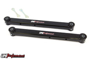 Rear control arms are one of the most important suspension modifications that can be done to your GM vehicle. Stock control arms are on the borderline of junk, bushing deflection and rusting weak stamped material add for traction loss and poor handling ability. Our boxed control arms are designed to give you the best of both worlds, whether your car is a weekend cruiser or a weekend track addict we got you covered. The included Energy Suspension polyurethane bushings are an excellent improvement over OEM rubber bushings, while adding ride improvements they also work excellent to reduce traction loss. These control arms are a direct bolt-on replacement designed to minimize wheel hop, improve cornering and help track consistency. Each control arm features the correct provisions for adding a stock or aftermarket sway bar. Sway bar holes are reinforced with a 0.120" wall thickness steel sleeve TIG welded and sanded into place. The construction of the control arms features 0.120" wall thickness rectangular tubing with CNC machined drawn over mandrel bushing holders and MIG welded end caps to keep out unwanted road debris. Features - Built using 0.120" Wall Thickness Rectangular Mild Steel Tubing - CNC Machined for Precision Tolerances and Accuracy - MIG Welded DOM Steel Bushing Holders - Grease-able Energy Suspension Bushings with Grease Fittings - Durable Long Lasting Powder Coat finish Installation: Installs in 1 hours using OEM hardware. All installation instructions included.
