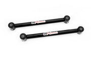 UMI’s heavy duty control arms are direct replacements of the weak, factory stamped rear lower control arms. UMI’s control arms are constructed of 1-1/2” mild steel tubing with CNC machined ends and assembled with polyurethane bushings. These direct bolt-on replacements are designed to minimize wheel hop and improve cornering, while lowering track ETs and helping track consistency. Control arms come complete with polyurethane bushings, grease fittings, zinc-plated steel sleeves and finished in a gloss powder coat.
