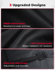 The soft roof is upgraded to 1680 Oxford Fabric which is more durable. It is resistant to tears, punctures, and abrasions. It is water-resistant and uv resistant; Second, the inner PVC coating also adds an extra layer of protection to the soft roof, making it last longer and require less maintenance over time; Third, we have upgraded the installation fixed straps to hoop and loop fastener, making the roof adjustable and non-slip, reducing the possibility of tear.