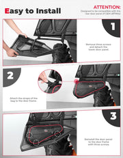 UTV door bags (14.57"x 6.89"x 2.36") fit most of the 2014+ models perfectly. Please note: The lower door storage bags are compatible with the rear lower door of a 4-seater SXS.