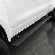 Introducing the all-new Westin Pro-e Power Running Boards, a superior upgrade that combines the functionality and appearance of your Truck, Bronco, Jeep or SUV. The Pro-e Power Running Boards are designed with a practical feature that automatically deploys when the vehicle's door is opened. This allows for easy entry and exit. When the door is closed, the running boards smoothly retract, seamlessly integrating with the vehicle's body and maintaining its sleek appearance.Equipped with two waterproof IP68 rated motors per side, these running boards are engineered for durability and reliability in any weather condition. The integrated LED lights illuminate the 6-inch wide, durable aluminum step surface, ensuring enhanced visibility and safety. Whether it's day or night, you can confidently step onto these running boards with their impressive weight capacity of up to 300 lbs. per side.The Pro-e Power Running Boards are constructed from corrosion-resistant aluminum and finished with a durable textured black powder coat. The included vehicle-specific mounting brackets and hardware guarantee a seamless installation process, ensuring a perfect fit for your vehicle.