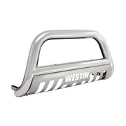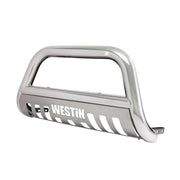 Westin(TM) E-Series Bull Bars are a front-end light bar designed for trucks and larger model SUVs. It is made of 3 diameter polished stainless steel tube. It mounts utilizing existing vehicle mounting points and installation does not require any drilling to the vehicle frame. Comes complete with mounting kit the Westin(TM) E-Series Bull Bar provides a mounting point for 2 auxiliary lights up to 6 in diameter. It features a die-cut Westin(TM) block logo design on the stainless steel skid plate unique to the Westin(TM) E-Series Bull Bar.