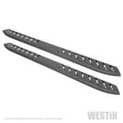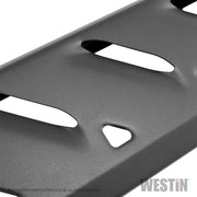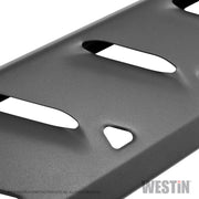 Westin Thrasher Boards are made of a 1-piece stamped steel construction. The boards are an aggressive Pre-Runner style and feature indented louvers along the step area. Thrasher Boards have a textured black powder coat finish and include injection molded bracket covers for a finished look.