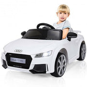 White 12V Electric Ride-On Car for Kids with Remote Control and Music Feature