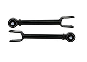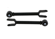Heavy duty turnbuckle adjustable trailing arms provides incremental on car adjustability of differential pinion angle. This allows you to dial in more or less traction under heavy acceleration.