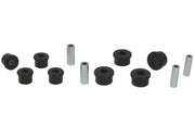 Worn front control arm bushings have a huge influence on vehicle stability, steering precision and braking efficiency. Replace worn bushings to as new condition utilising Whiteline's advanced synthetic elastomer bushings with core characteristics ensuring superior elasticity, memory and outright durability for all forms of driving applications.
