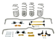 The ultimate entry level suspension upgrade! Performance, handling and comfort make up the Grip Series Stage 1 kit featuring Whiteline signature front and rear adjustable (where applicable) swaybars, drop links and performance lowering springs. Whiteline Springs deliver improved vehicle performance whilst maintaining safety and ride quality characteristics. This kit contains 4.1kg/mm (229lb/in) front rated springs that provide a 20mm drop while the 4.8kg/mm (269lb/in) rated rears deliver a desirable 20mm to the vehicle. Boasting a 26mm 2 point adjustable front sway bar and 24mm 2 point adjustable rear sway bar, the kit is completed with high quality sway bar links and mounting accessories that ensure optimum performance and ease of installation. Achieve perfect balance and precise tuning with this GS1 Kit.
