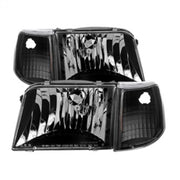 xTune Ford Ranger 93-97 Crystal Headlights w/ Corner Lights 4pcs Sets Black HD-JH-FR93-SET-BK