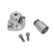 Our ZZP 3800 Billet Thermostat Housing is a great bolt in replacement for your factory thermostat housing. The factory cast unit gets pitted and degrades over time from dexcool; this often leads to sealing problems, even with a new gasket. Made of billet aluminum our thermostat housing will not warp or rust, and will always look great in your engine bay. Available in two finishes, clear aluminum or matte black anodized. Uses the stock style thermostat housing gasket. Comes with 1/8" NPT plug on top, compatible with your stock bleeder fitting. Includes M8 stainless bolts.