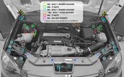 Replaces you stock bolts/push pins in the following locations: hood bolts, fender bolts, headlight bolts, hood latch bolts, grille push pins, strut/coilover mounting nuts, entry level turbo kit boost controller or LNF fuel filter (dress up washers only, you will re-use your existing nut/bolt), Option B mounting hardware, and coolant tank nut.