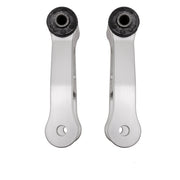 Upgrade those rusty old pressed sheet metal stock length dogs bones with these shorter stronger billet aluminum pieces. They come with new rubber bushings installed. We do not offer them with the polyurethane bushings installed because they will cause too much vibration. The shorter dog bones will hold the engine forward, which have a few benefits as shown below.